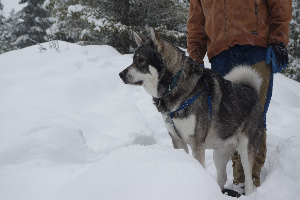 Ark needed a mate of course and we had been working with Satu, who by the way is incredible. She had arranged with her top breeder friends who have Champion Swedish Elkhounds to get a female for us. The little female was born a few years ago on March 5th in Finland, yes, same day as Karu who was born in Finland as well, how cool is that.