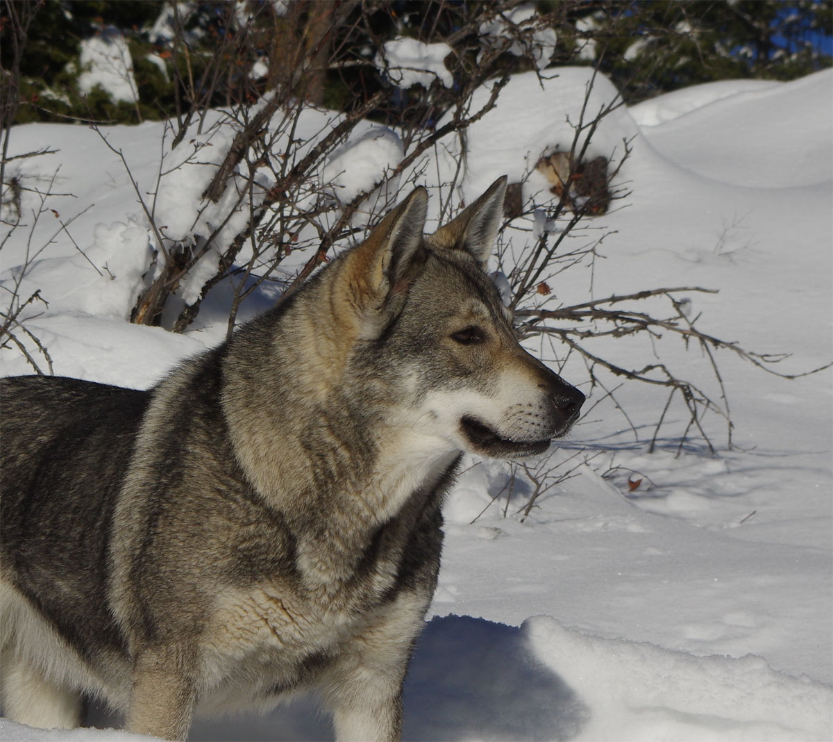 One of the daughters is shown to the left, a stunning beauty, Hada. These are going to be incredible Jamthunds. Full instincts and tons of heritage with hunting and hiking, companion dogs.