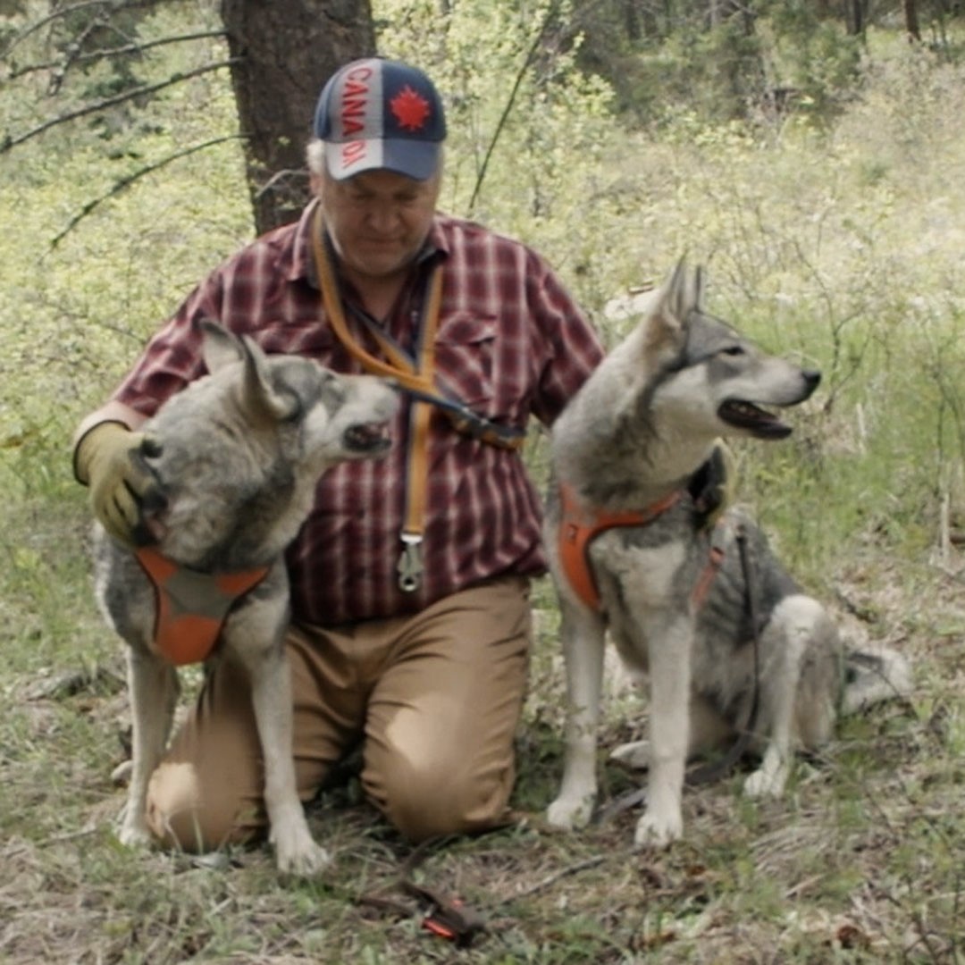 This is the big boy Posso, what a super dog. He is so friendly and personable and easy to work with, just an absolute fun big rascal. He is a dark solid big Jamthund and has tons of heritage that have excelled in the bush. He is currently mated to Aurella and we are waiting on that litter coming up this summer. This is so incredible.