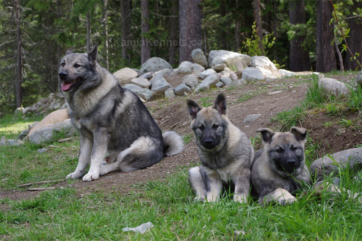 Easy going, but completely fearless, no problem to take anywhere, yet they watch what's going on. They are trouble free, no real issues of any kind with Elkhounds, no feet, eyes, ear problems, all those things are pretty much non existent in Elkhounds. You don't have a line of dogs last 4000 years with problems.