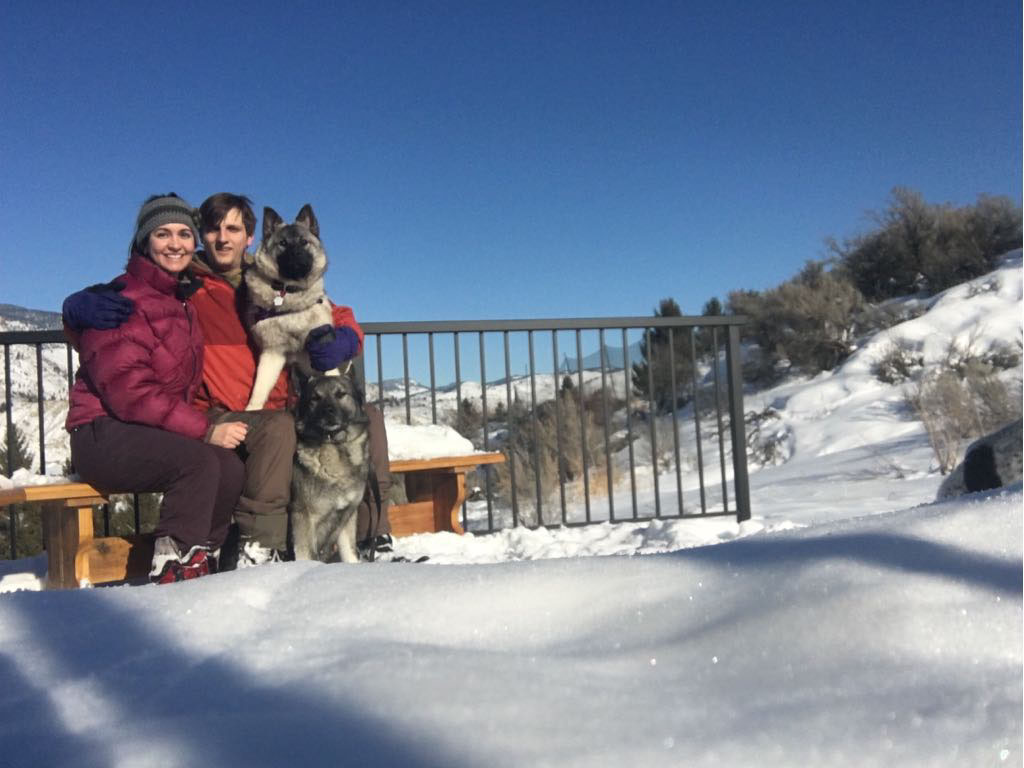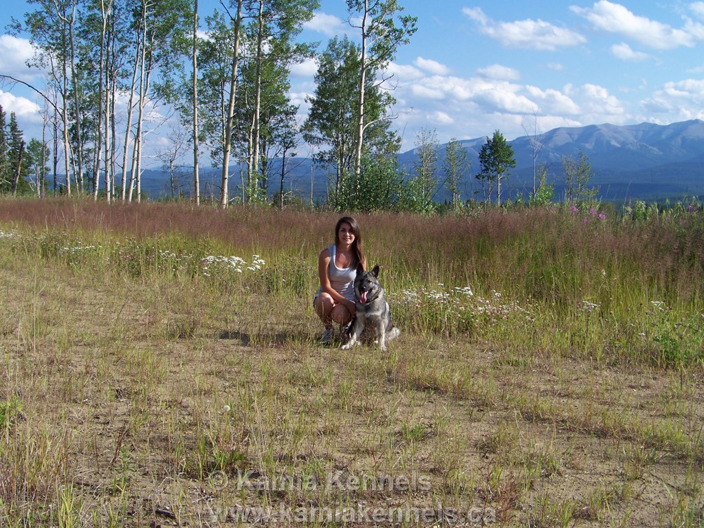 Ashten is shown here with Jaegar at about six months of age. Her and Jaegar flew home for the summer and we had a chance to get out hiking. She has him so well mannered, he is a great guy to be around.