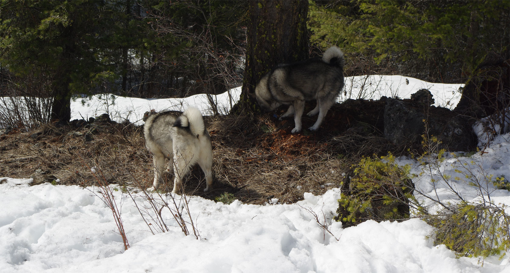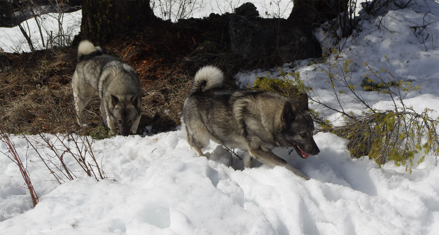 This is a full old world working Elkhound, every old trait intact - Just a young male but very smart, a highly intelligent boy, extremely good to work with. An Elkhound is good anywhere, but out here, well, you know they are home, you know, this is where they belong, what they were bred for.