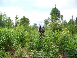 I had the privilege on Canada Day to take both Jaegar and Takoda with me on a nice mountain hike. It was such a great day, both these guys are some terrific dogs to travel this region with. Jaegar is a big boy, he travels side by side with Takoda, and there are few if any breeds of dog that would keep up with Takoda in this region and terrain. Jaegar stays right with him, pushing a bit even. He is a fast moving big fella.