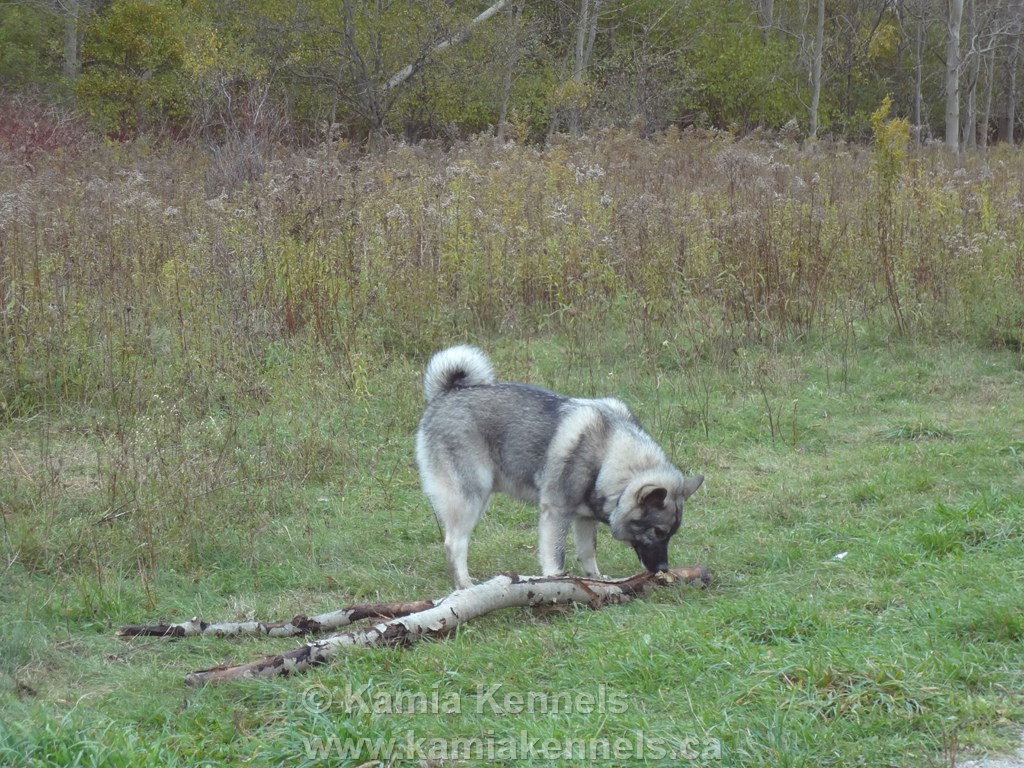 Families have wanted a good stable reliable dog for centuries. Elkhounds are one of the oldest breeds known and have been family dogs for that time. It's dogs like Jaegar that people want. Easy going, but completely fearless, no problem to take anywhere, yet they watch what's going on. They are trouble free, no real issues of any kind with Elkhounds, no feet, eyes, ear problems, all those things are pretty much non existent in Elkhounds. You don't have a line of dogs last 4000 years with problems. Brush out your Elkhound a couple times a year and that's pretty much it for maintenance. Feed great food, they do the very best on raw, like Jaegar gets, and lots of exercise, and kind words and fun and you have a dog that will live in many cases 15 plus years with no issues.