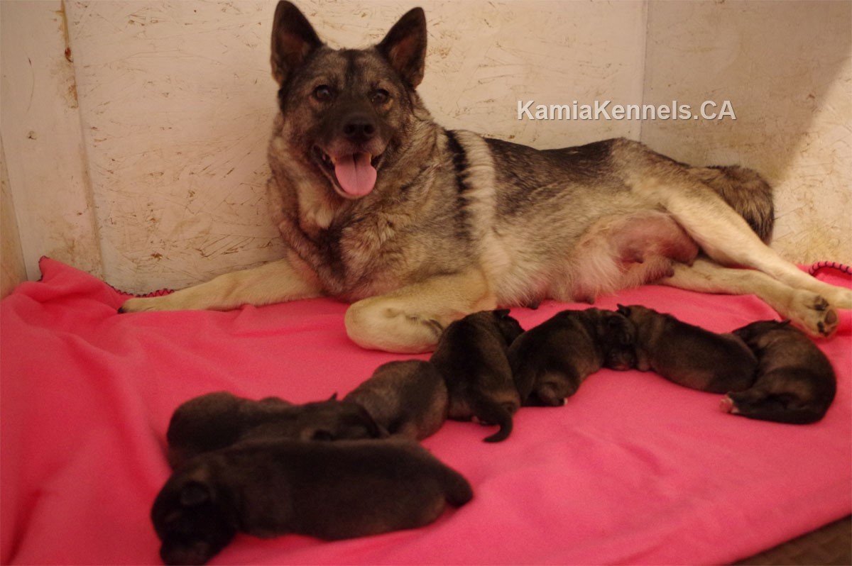 As of September 7th 2017 Kai now has her second litter on the ground, this litter is with Leif. Kai had 7 healthy and strong little rascals, some very serious Norwegian Elkhound Puppies. We are excited to see how they develop, they look terrific already as I write this on the 10th of September, 2017, photo of them on the sidebar.