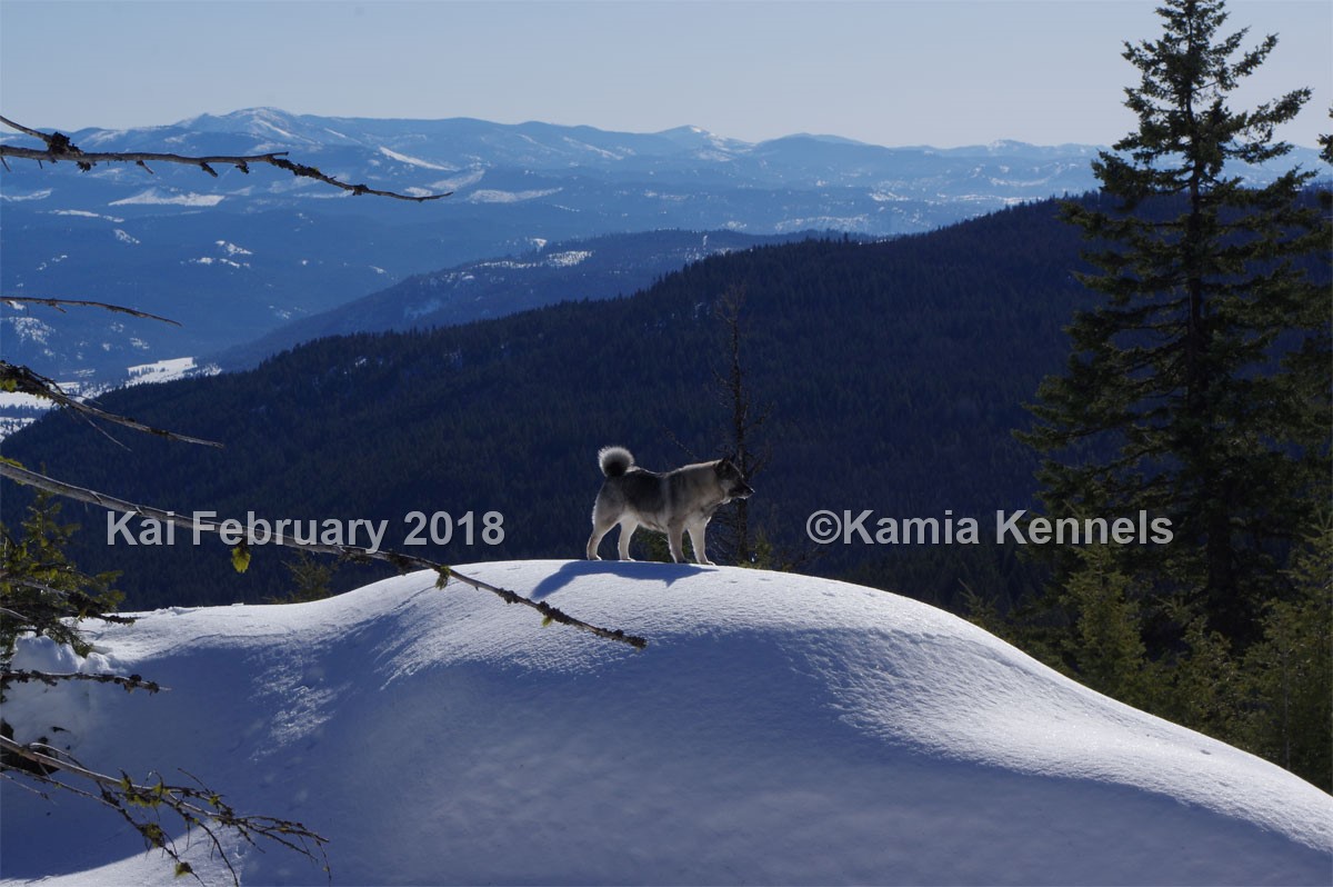 This is Kai, the awesome daughter of Tora and Bram, photo taken February 10th, 2018, she is bred to Leif in this photo.