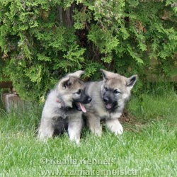 There are few places you could go where you would encounter two brothers like this, Russ and Holly are in a very limited group of Elkhound owners. We are so pleased with the placement of all our dogs, and to place two siblings in one new home is truly great. We have another set of females going to some new owners in the next litter, they as well see the true value for the dogs, as well as the enjoyment they will have with two, so we are going to encourage when possible the placement of two brothers or two sisters.