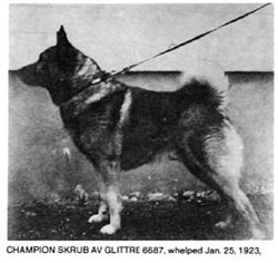 Jaegar is a representative of times gone by in the Elkhound world as the breeders in North America have moved toward the look and style of Leif. Very few of the old world working breeders such as I exist in North America anymore. The early standards that were drawn up at the time of the Association have been changed and rewritten a few different times and Jaegar would no longer meet the current standards, even though he meets the original perfectly. Jaegar is a flawless example of a pure working Elkhound.