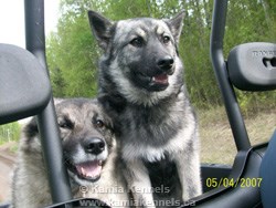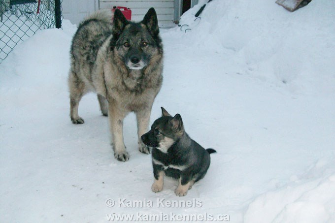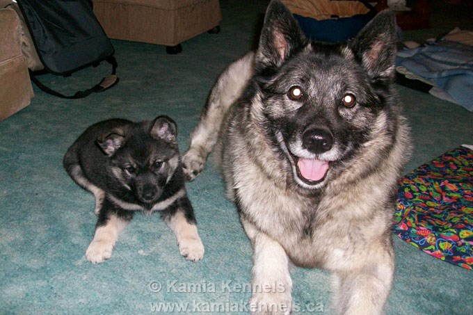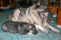 It is a real pleasure for us to have our first female Lexi, go to such a great home. Lynn has been updating us and keeping us posted on how she is doing and has sent down some terrific photo's of the young girl, with her new mentor and companion, Kelsey, an older Mature Elkhound Female that Lynn has had for many years. The two of them Lexi young female elkhoundare getting along great.