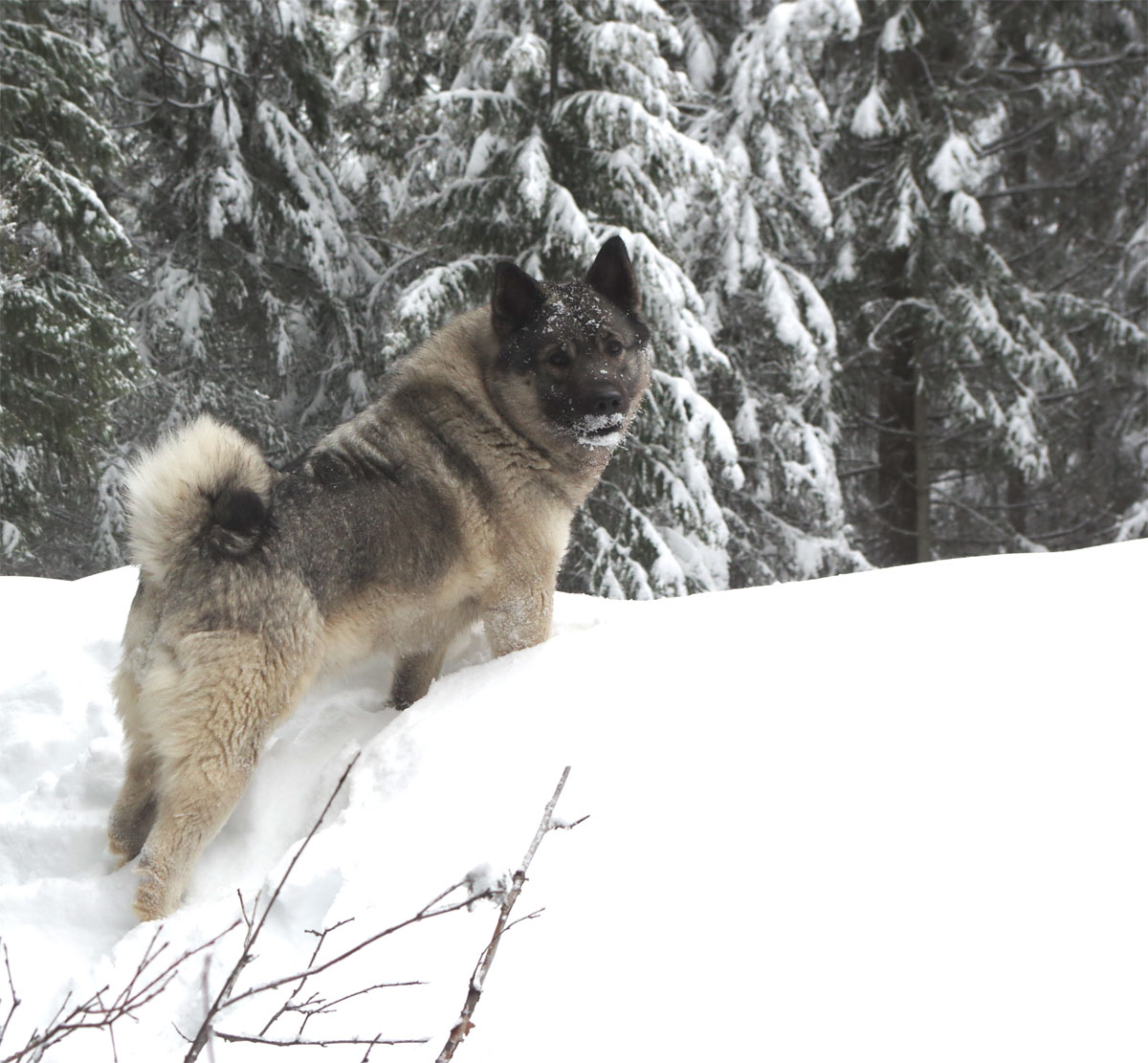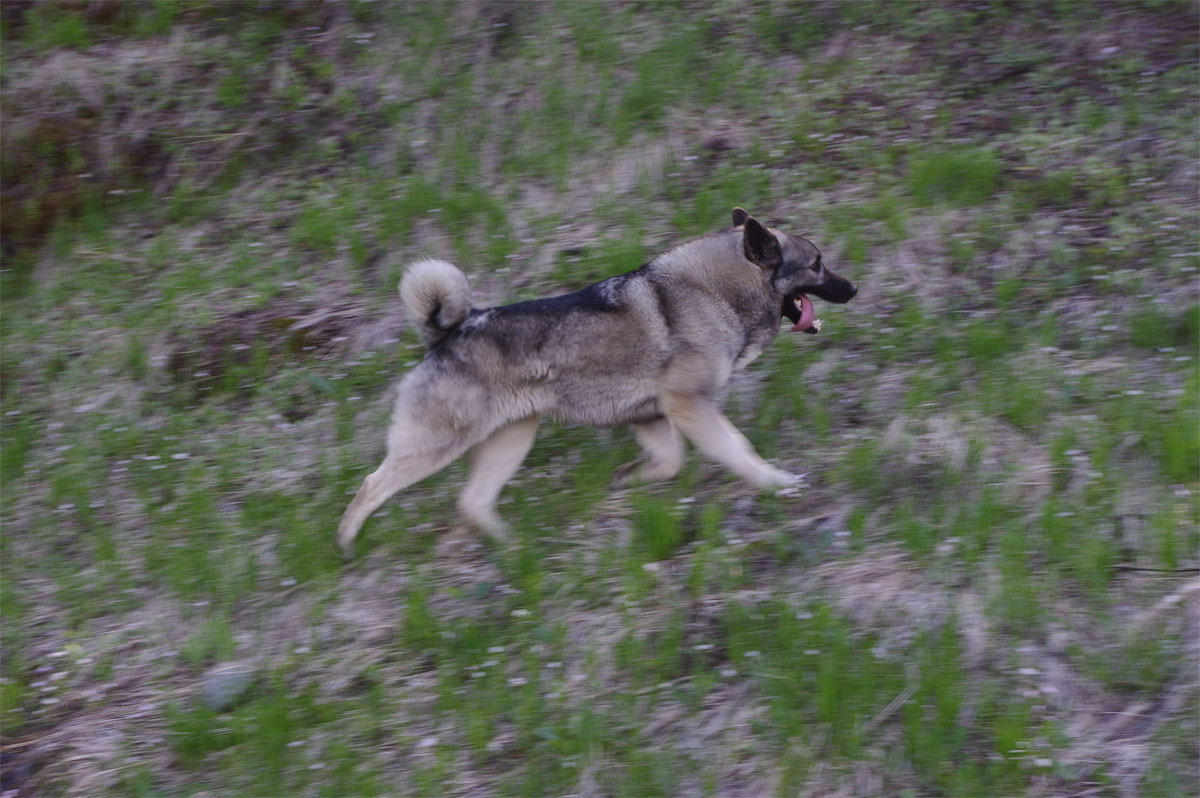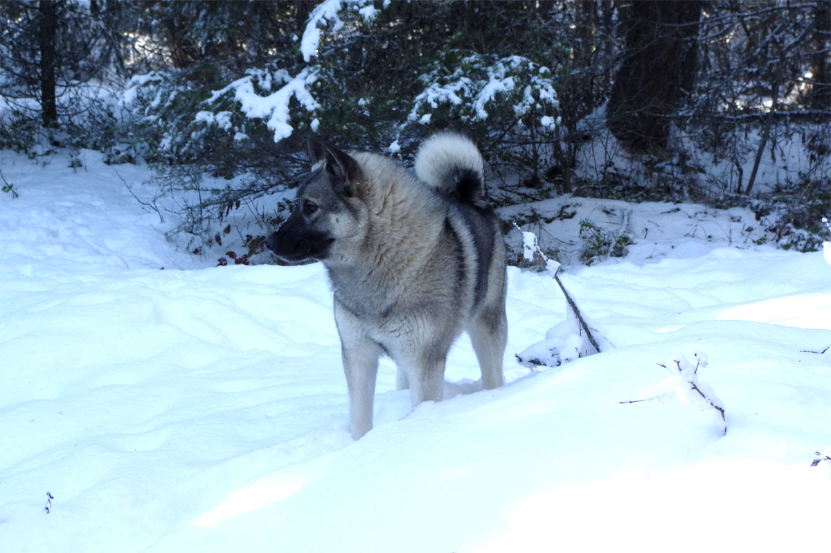 She walked around day in and day out at 64 pounds of muscle, tough as nails. This was a working Elkhound female let me tell you. I hiked with Kamp as a very young pup and for years, any conditions, she had no quit in her.