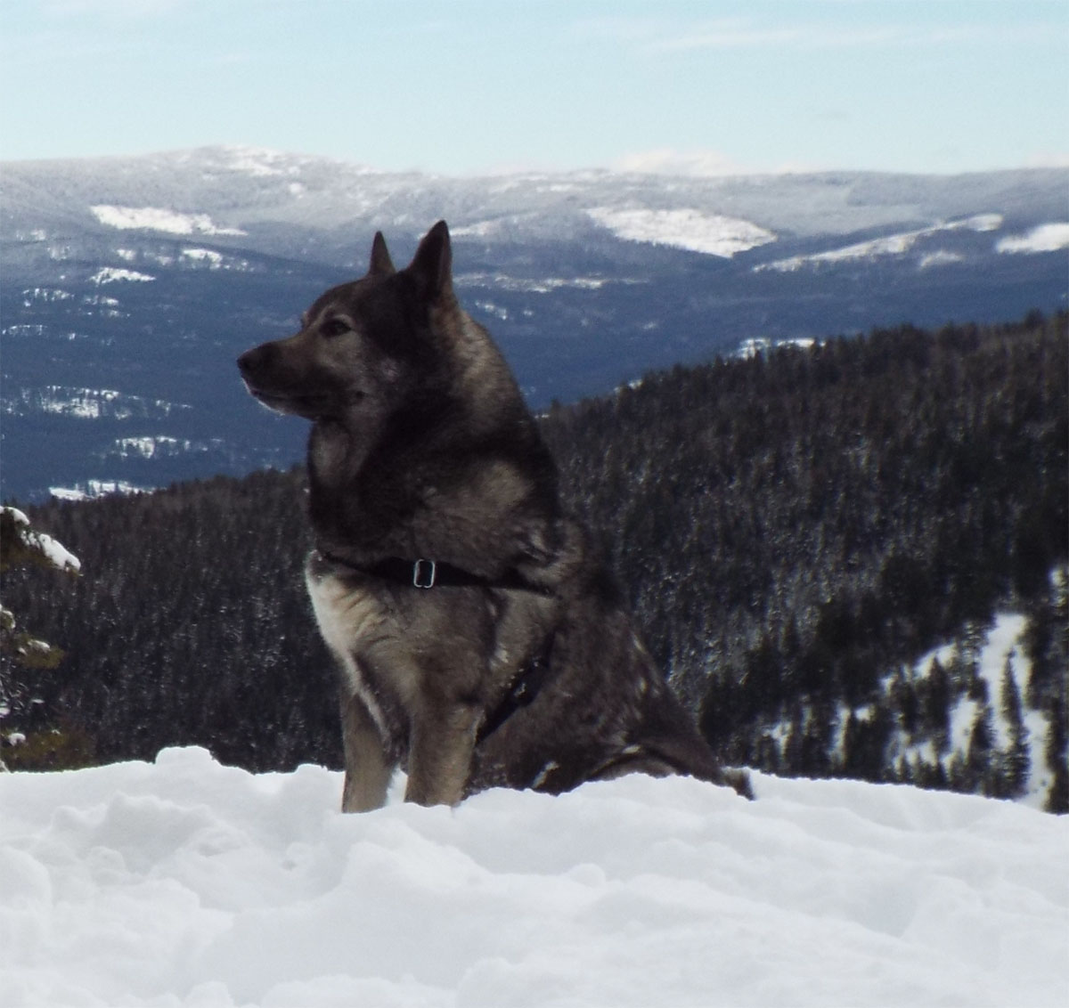Takoda is the father of Teeko and with that comes all the incredible personable nature to the handler, the full instinctive skill in the mountains and the extreme loyalty and protection traits. There are no better lines of Elkhounds in North America than the background of Teeko.