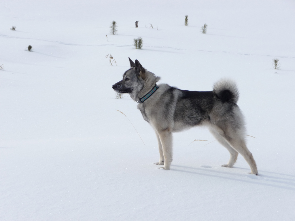 Every feature of a perfect Elkhound shines through loud and clear with their daughter Tekla.