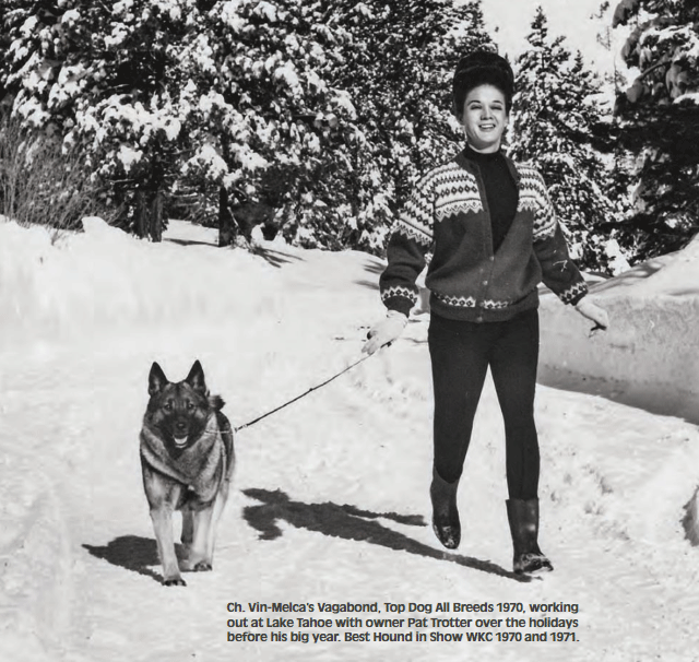 Vagabond is most likely the most famous Norwegian Elkhound in North America, not only was he quite frankly an absolutely stunning Elkhound male, but he was shown and presented by Pat Trotter over the life of his show career and achieved incredible things.