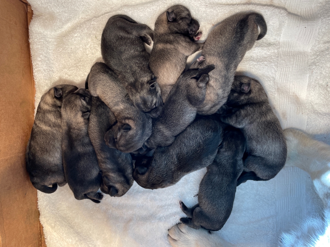 We will keep you posted as we go along, it's early in the days so we watch close and make sure Rita is doing good and the pups are all getting even feeding and Linda is old school, she has done this a lot so knows what she is doing. Darrell is there helping as well, he handles a great deal of the work with the other great Elkhounds they have when Linda is in with Rita. Lil Griz and Tikka are there, it's a busy time.
