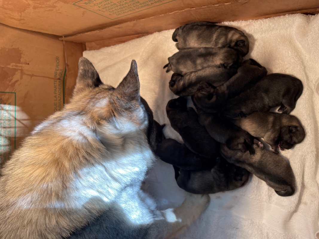 Rita is back down with Linda and Darrell in Montana for the third litter. She currently has 11 pups this litter.