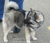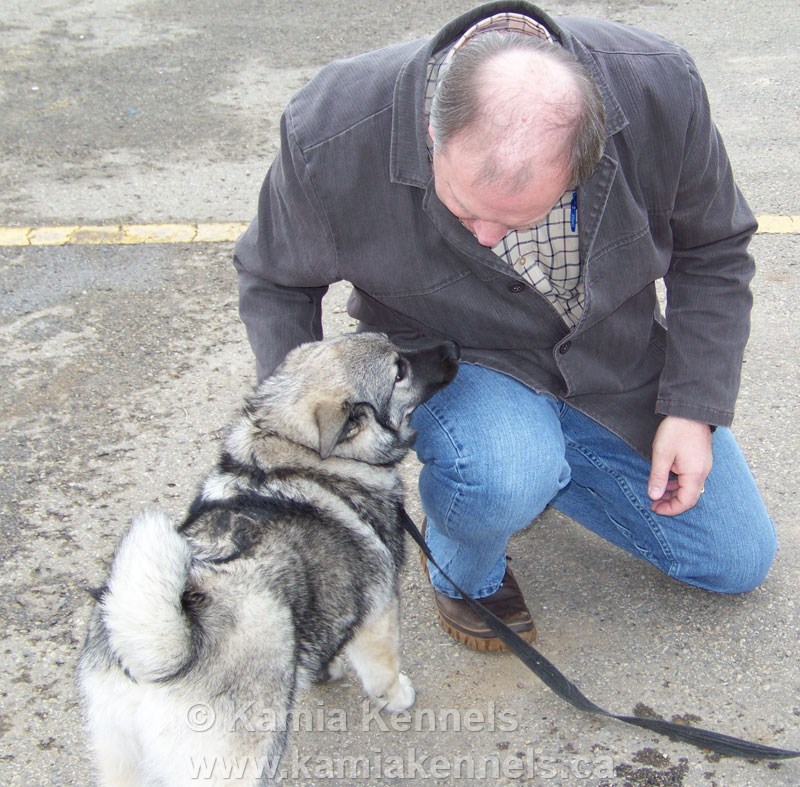 Terrific Disposition and Personality – Shadow has such a nice personality, he came right over to us, remembered us and was such a nice young fella. He was excited to see us and is filling out very well. We couldn't get over how nice his coat was, his color is terrific. We used to call him Mr. Silver before Cathy had picked out a name as he always had a truly great color and marking set and he is really turning out to be a beautiful Elkhound."