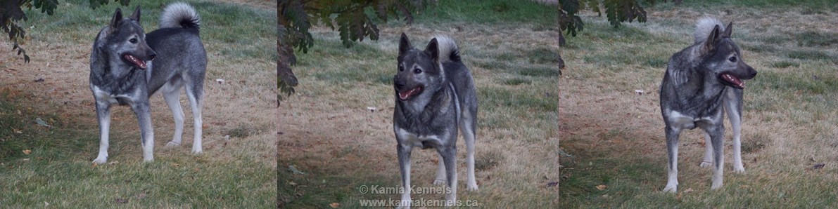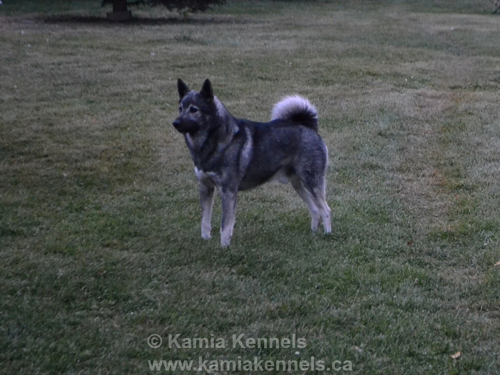 They are predominately a 1 owner dog, they bond very close with the handler. These are very personable dogs to the handler and "Pack", the immediate family. They are very good natured to the pack, entirely devoted to please and work with the handler. Will wait for hours to spend time. These particular dogs are not as stubborn as the Norsk Gra or Norwegian type Elkhound.