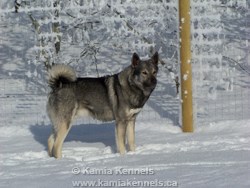 Takoda is pictured above at 4 years old. He is one of the rare Large Swedish Greys, there are only a handful of these boys in Canada, and as far as I know, all the others are his pups. These big Greys are ancient dogs, they have traveled the Northern regions for many centuries. Your looking at a dog who is very much unchanged from hundreds of years ago.