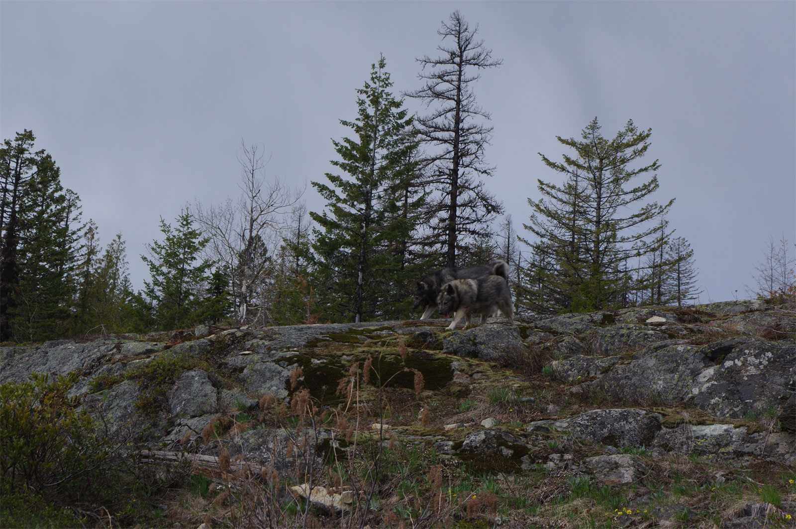 Below you will find a video of three of the pups from Aspen's sisters Willow and Sage. Both of these sisters were bred to Karu at the same time, I have them out in the mountains with 3 mature Elkhounds! These 3 pups are all Grandpups of Tika and Bram.