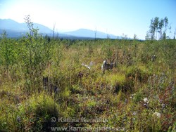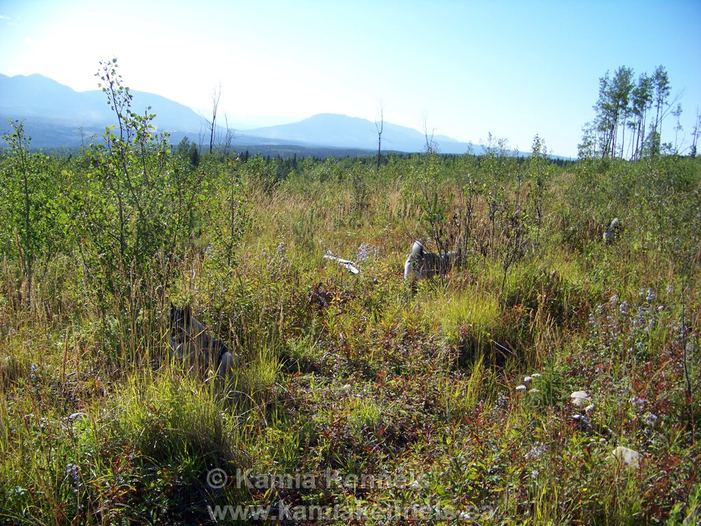 But, as you can see from this photo, you wouldn't have a clue where they were, and you also wouldn't have a clue where a mother bear was with her cubs, so Elkhounds are crucial to a lot of things, and the ideal dog for this type of terrain. Elkhounds instinctively know what to do out here, I don't have to train them, I simply have them like me, and they look after me, that is about the size of the training for here.