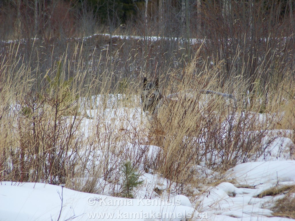 The role Takoda plays doesn't change with the season, he does the same thing in winter as in summer, as fall and spring, he ranges around and checks things out for me. He always knows where I am and he always checks in, and then resumes his work, he is tireless in the bush, he performs his role all the time.