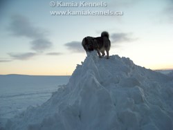 Let me explain a bit more about this reason why over the centuries the breeders moved toward two types. Again it comes back to movement in the snow, and we literally could not believe the difference this winter. On low snow cover, or for that matter no cover such as the summer and fall, the dogs move effortlessly and it's hard to see a real difference in speed or movement ease, sure you can see in a long run the taller dog over takes the shorter but for the most part in every day movement they are equal. However in deep snow this difference in height becomes so pronounced it's not even close.