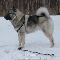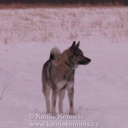 Nanook is just about a year old, he is out of Mia and Takoda, and was the only Male from the last litter. He has turned out to be one of the most impressive Elkhounds you'll see. Nanook is a dominant young fella, he does not forget his heritage. He pays attention to his surroundings, his stance and posture is true Northern Elkhound through and through.