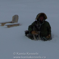 Of all the males we have seen, Bosco resembles Takoda the most, he is a long lean energetic boy, and he Loves Snow. His brother Nanook above goes ballistic for snow, and the same goes for Bosco. These dogs can't function to capacity without snow it seems, they instinctively know that their ancestors fought through blizzards and snow storms to prevail, they realize, they have it made, and just enjoy the snow these days. But make no mistake, a big fella like Bosco loves to work, he can go for hours, and won't shirk his tasks.