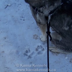 He has a picture perfect stance, you couldn't get a show dog with tons of training to stand better, and he does this just naturally. A Judge couldn't find a fault with Nanook, his tail is up tight and high, his legs are placed square and even. He runs a flat belly, with his big chest extending down past the Elbow, and this will only get better, he has Takoda to thank for that deep chest, Mia for that terrific stance.