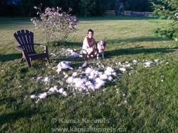 A big brush out like this you would do twice, and a couple small ones and your good for the year for the most part. You can do some touch up brushing if you like, I don't bother too much, if I was to get my dogs, say, Takoda looking too good it might go to his head don't ya know, Jaegar on the other hand, well he is a big show off anyway, Ashten takes him all over the place, he is like a GQ dog or something.