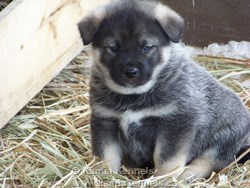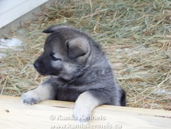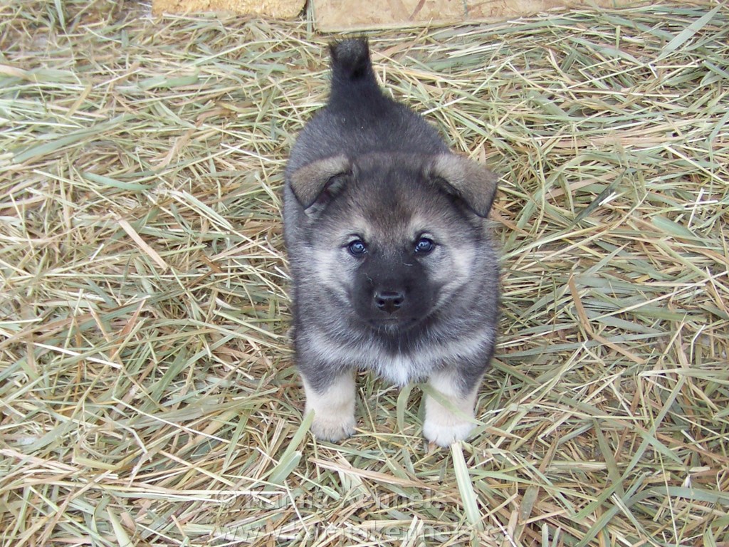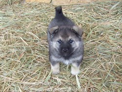 This will be one of the best looking Norwegian Elkhounds you'll ever see, he is going to be a large Silver Male, nicely marked, he will weigh into the top end of the spectrum, Tora put some serious frame into this boy, and Bram put some length, and some good looks. He has just the right attitude, he is really a friendly boy, yet can amuse himself, doesn't need to be around you yet enjoys your company if you are there.