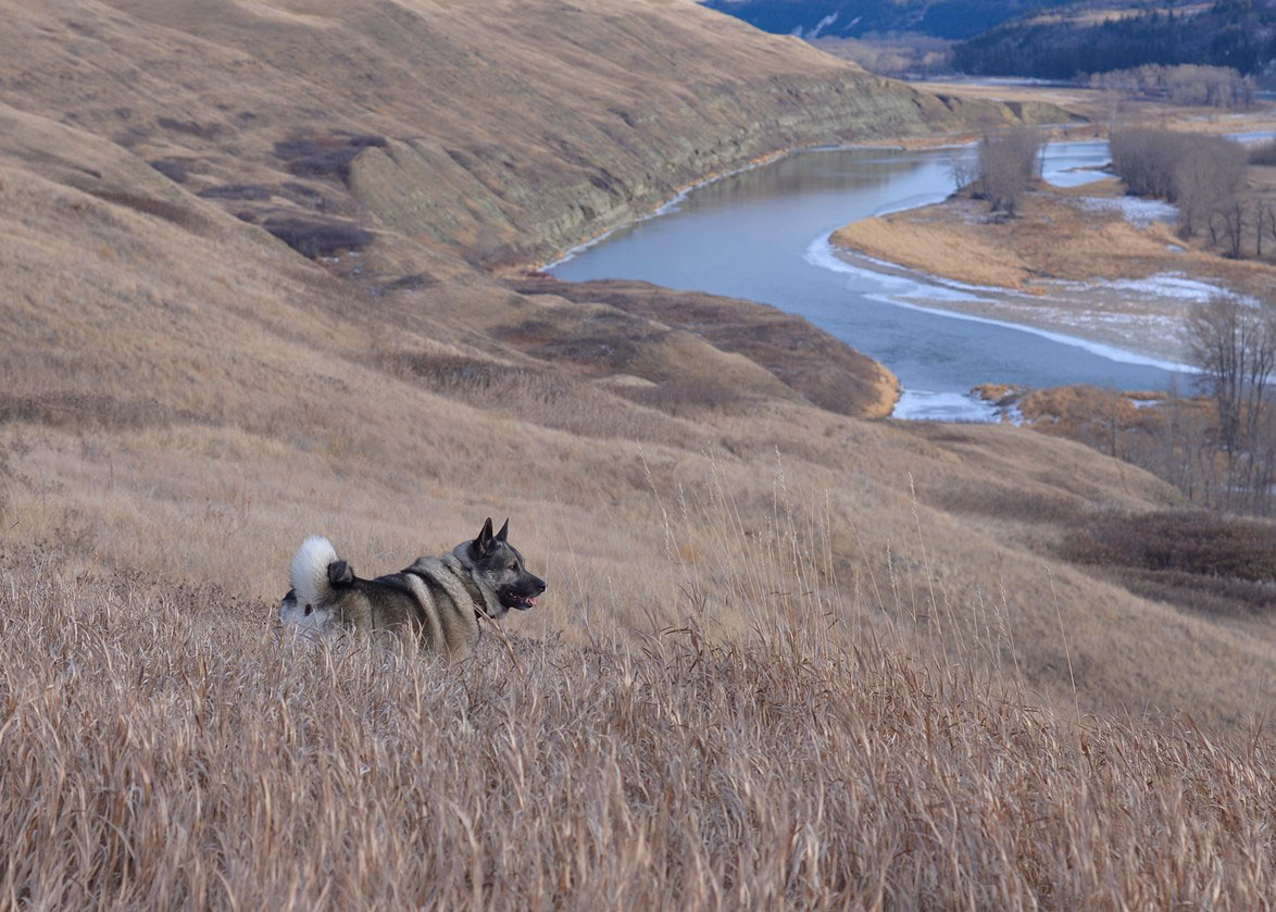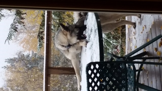 We are sure happy for Greg and Anna-Marie and the kids, and wish to thank the whole family for the great life that Maui has down in that cattle country of southern Saskatchewan. Keep us posted anytime, we sure appreciate the update. Thank you. That Maui looks fabulous, you can pick those dark daughters of Mia and Takoda out of thousands of Elkhounds, they are awesome.