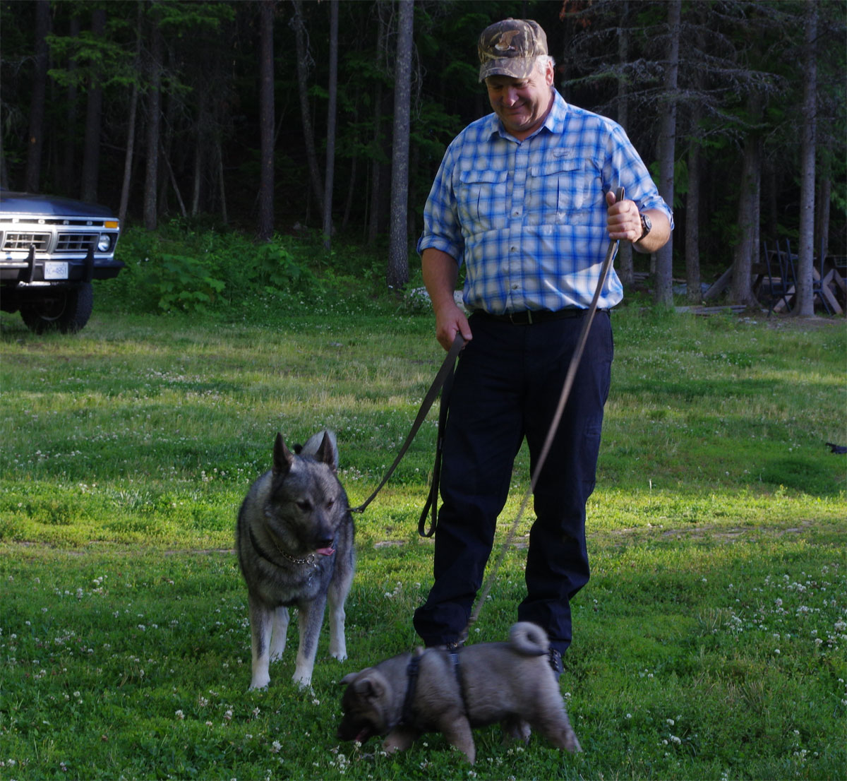 Three generations of the best mountain ranging Elkhounds there are, those my friends, those are some serious Elkhounds!