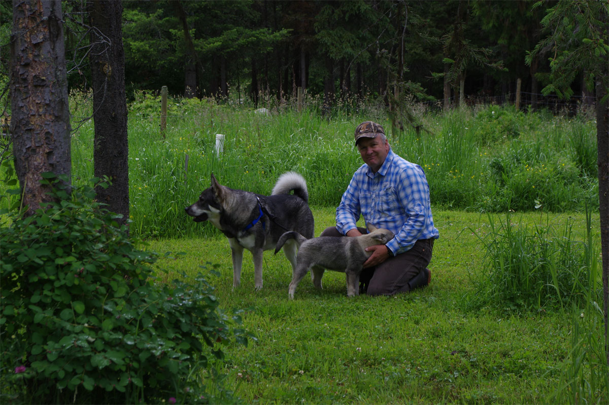 Beth and Russ were awesome to leave Rico with us for the week, we really enjoy this big fella. He is so well mannered and such a polite fella.This is a stunning big male Jamthund. One of the very best in the world of course. Now if you are not familiar with this big rascal, I have some background on his breeders, Jani and Satu, who I met over in Finland when I went to get Aina. Satu and Jani are Master Breeders of the Jamthund. There are no better dogs to be found than those they raise.