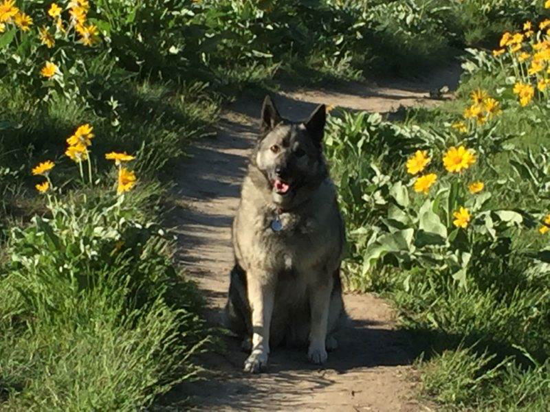 turned 7 this spring. She is shown here on a deep powder hike with