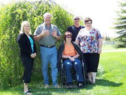 A few days back Marlene and I were doing some yard work and a convoy of vehicles starts driving in, I thought what's going on. Here my 3 sisters, Jenny, Carolyn, and Marlene, along with my Brother Dale, and Carolyn's husband Randy, daughter Cara, and Wade, Jenny's husband and two boys, Kyler and Kieran all came to say happy birthday, as I had finally made it to 50. We had a great visit, it's rare for all of us to get together and share some Elkhound tales and show some Elkhound scars so it was a great time and a huge surprise.