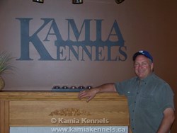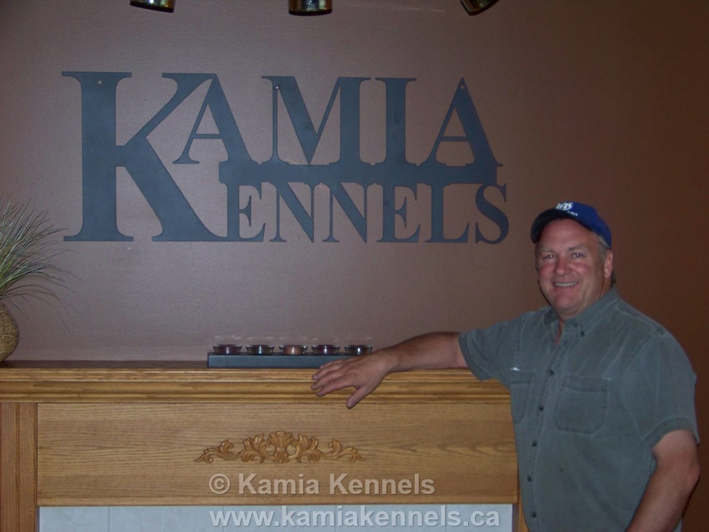 Randy carried in a brand new custom designed, laser plasma cut sign for Kamia Kennels. What a beauty! No Doubt.