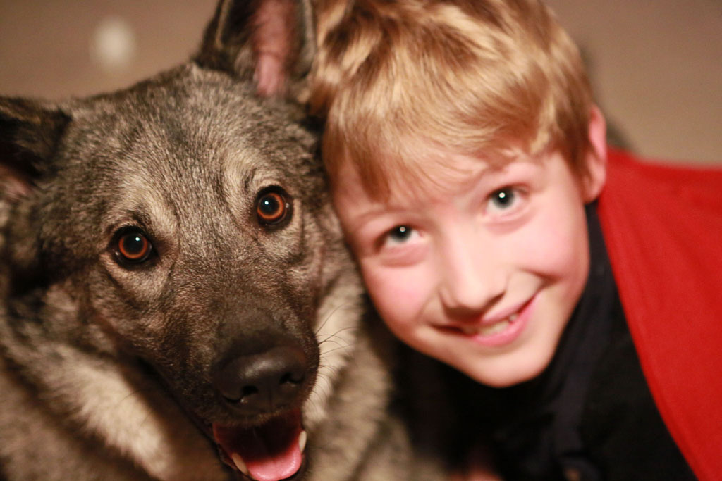 Tesla is an incredibly handsome Elkhound male, stunning color pattern, great features, what a tremendous fella. A huge thank you to Eric and Julia, and the whole family for the great home they give Tesla.