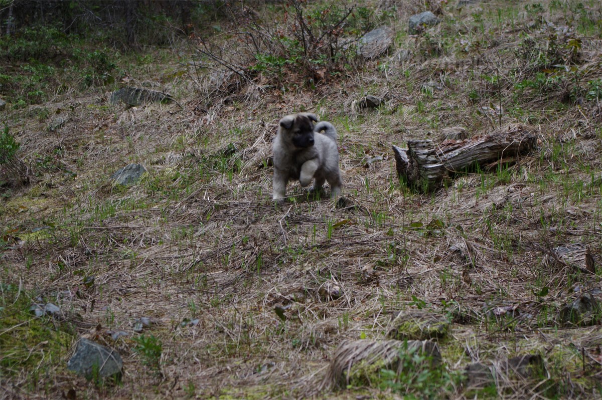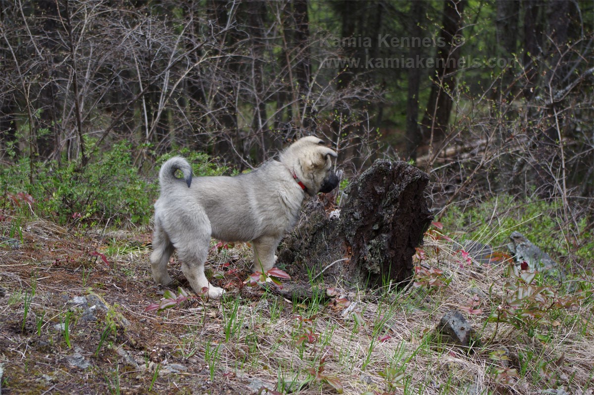 Canada, he is a full Norwegian Elkhound hunting lineage from Norway.