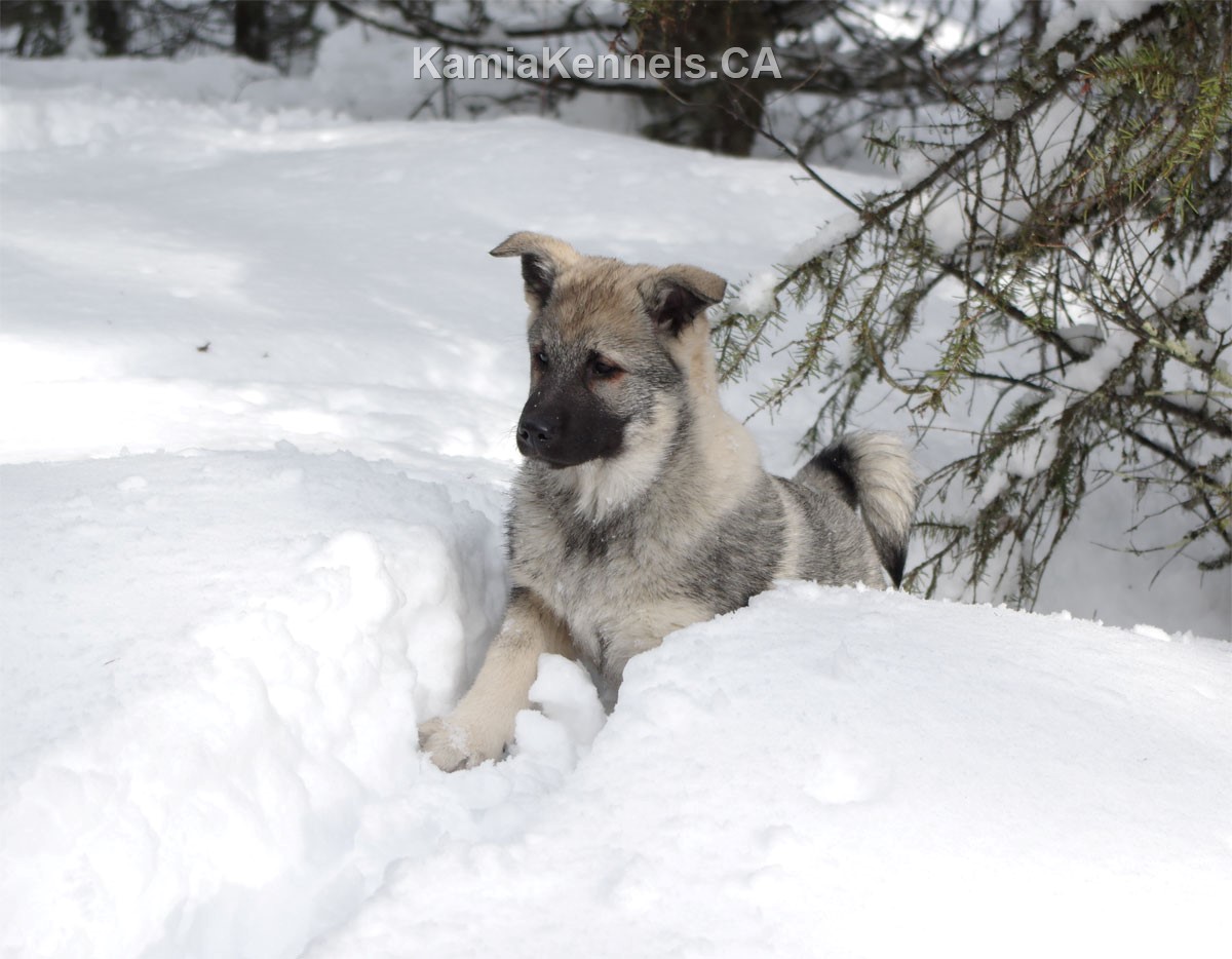 Top Down: Desna and Tora, Desna, Moki ( sitting by MANE) then Havoc, then Rigel, and then Birgit, and finally Kai with her young daughter, Fiska all of course are famous golden ring lineage Elkhounds, Kamia Kennels as you guessed having one of the few strains of the golden ring Elkhounds left in the world. Pretty Cool Indeed!